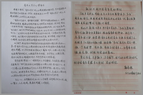 此次主题团课学习中,各团支部通过QQ视频会议、群讨论、手写个人体会等多种形式展开。活动中,各团支部先分享了北大援鄂医疗队“90后”党员给习近平总书记写的信,对习近平总书记给他们的回信进行了解读。团员青年分享了个人体会,展开线上讨论,用心体悟习总书记给予新时代青年的关怀与鼓励、期待与厚望。