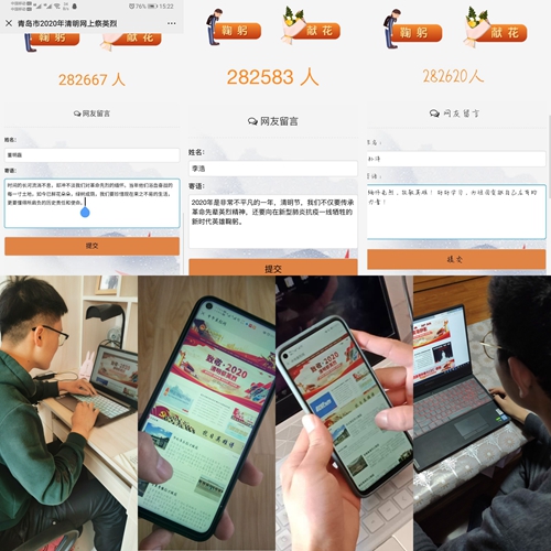 活动之初,信息学院学生会向全体学生发出了清明节“文明过节、网祭英烈”的倡议书,号召全体同学致敬英烈,哀思悼念抗疫英雄,立志爱国初心。活动期间,各团支部通过官网、微信公众号等网络平台参与了“网上祭英烈”活动。同学们通过文明绿色的祭祀方式,寄托哀思,对浴血奋战的革命先辈、勇挑重担的新冠肺炎疫情牺牲烈士表达缅怀、致敬之情。与此同时,各班通过网上主题班会的形式引导同学们收看青岛市“清明祭英烈”活动启动仪式视频,随后开展线上讨论、组织学生演讲,力求号召广大青年学生缅怀英雄、砥砺前行,努力成为担当民族复兴大任的时代新人。