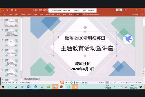 燎原社团开展致敬﹒2020清明节祭英烈讲座