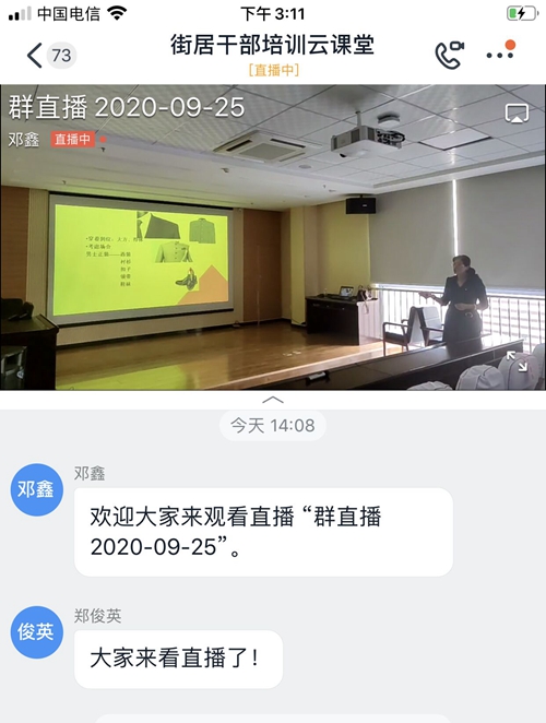 活动中,旅游学院教工第一党支部韩静副教授为长江路街道干部讲授公务礼仪课。长江路街道和社区居委会、科室相关负责人和各社区书记主任、组织宣传委员等40人参与了现场培训,并通过“钉钉”平台“云课堂”面向长江路街道干部开展了网上直播,共计近160人次在线观看,取得了良好的传播效果。授课过程中,韩静结合基层工作实际情况,通过现场演示与讲解,从职业意识、仪容仪表礼仪、日常交际礼仪和会议服务礼仪等多方面进行了礼仪普及和分享。长江路街道办工作人员表示,此次讲座内容贴近工作实际,氛围热烈,感谢学校与社区合力举办的公益活动。