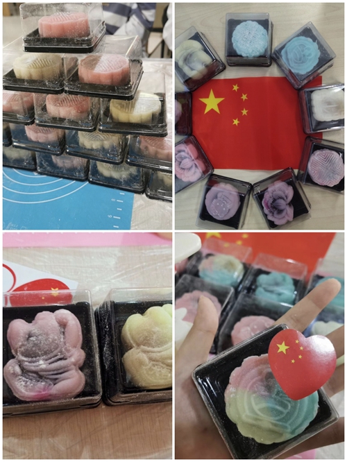 活动在全体师生共同奏唱《义勇军进行曲》中拉开了帷幕。活动中,同学们共唱《我和我的祖国》,挥动着手中的五星红旗,表达心中满满的爱国情怀。同学们还学习了月饼制作,品尝了美味的月饼,通过体验擀皮、包馅、压模等手工制作流程,感受了中秋文化底蕴。