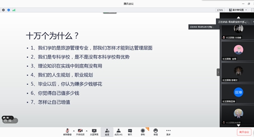 讲座中,赵芮以《未来旅游行业发展——创业者之路》为题,从传统旅游与新型旅游之间的差异切入,结合自己择业创业经历,以小确茶的创业案例,深入浅出、生动具体地讲述了创业道路面临的各种问题、创业成功因素、创业团队的成长等方面的内容。她最后鼓励学弟学妹们要做好职业生涯规划,成为更好的自己。在互动中,同学们纷纷表示通过聆听赵芮的讲座,收获良多,将进一步思考学习与工作的关系,为日后开展创业实践做好准备。