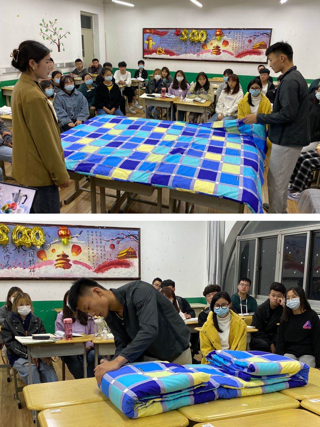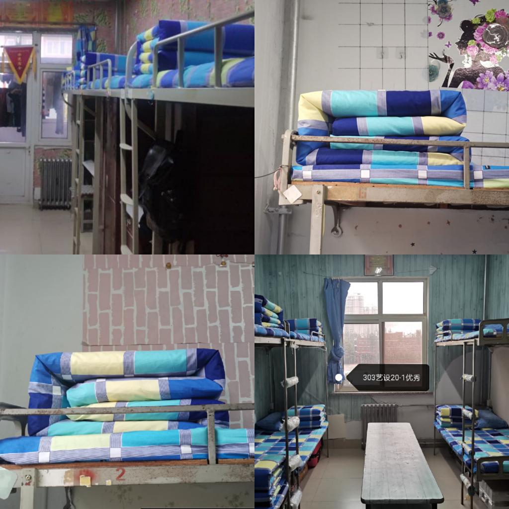 开学伊始,艺馨书院楼管会干事利用晚自习期间走班宣传公寓内务、安全管理方面的有关规定,并示范军被叠法及要领,指导同学们如何将被子叠成“豆腐块”,从被子的对折尺寸、折叠手法、掏平压实和如何叠出棱角等方面做了详细讲解。比赛当天,同学们纷纷有条不紊整理内务,被子折叠手法娴熟。楼管会对各宿舍的被子折叠、床铺整理、生活用品规范摆放、宿舍清洁卫生等方面赋分评选。经评比共有6个宿舍荣获集体优秀,13名同学获“叠军被”单项优秀。