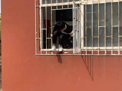 学生公寓一楼逃生窗学生逃生演练