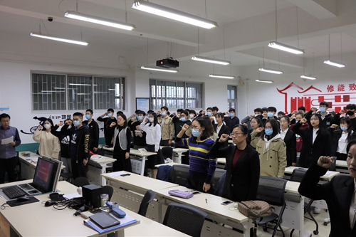 投票宣布后,全体新老党员面向党旗进行庄严宣誓。最后,信息学院教工第四党支部书记李海民发言,他表示,预备党员要在思想上和行动上真正入党,加强自我要求,积极向优秀共产党员学习,带头发挥党员先锋模范作用,成为一名真正优秀的共产党员。