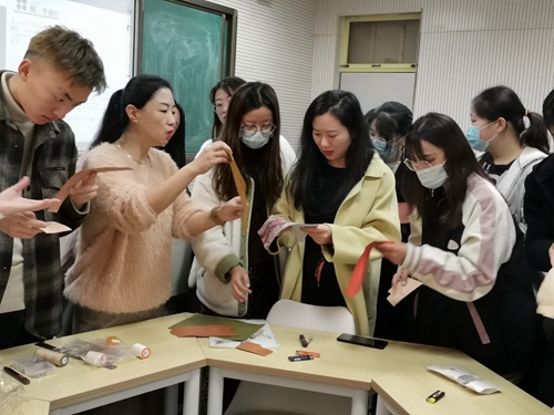 11月7日上午,艺术学院邀请天生宠爱手工作坊创始人孙莉梅、徐琦在闻道楼211教室开展“匠心造物,精益求精”讲座。艺术学院文化创意等社团师生聆听了讲座。