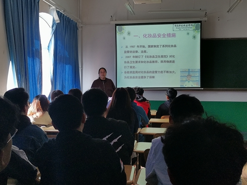 11月9日下午,生物与化工学院闻道楼教室举办了知行讲堂系列讲座之“化妆品健康与安全”,讲座由生物与化工学院教师杨慧博士主讲,生物与化工学院2019级应用化工技术专业的40余名同学参加了此次讲座。