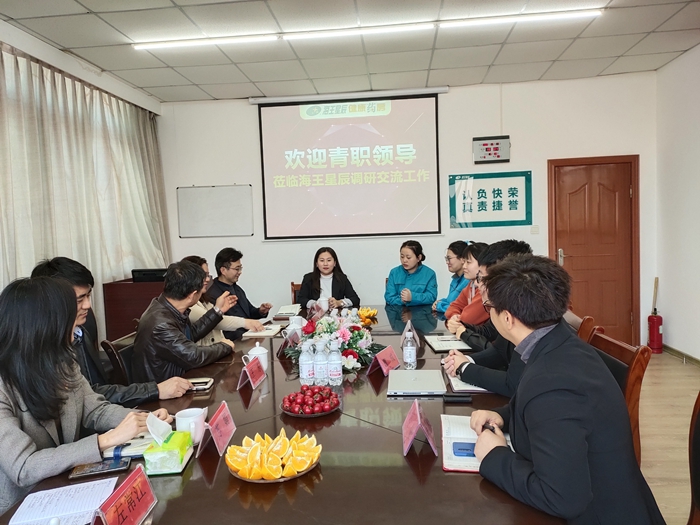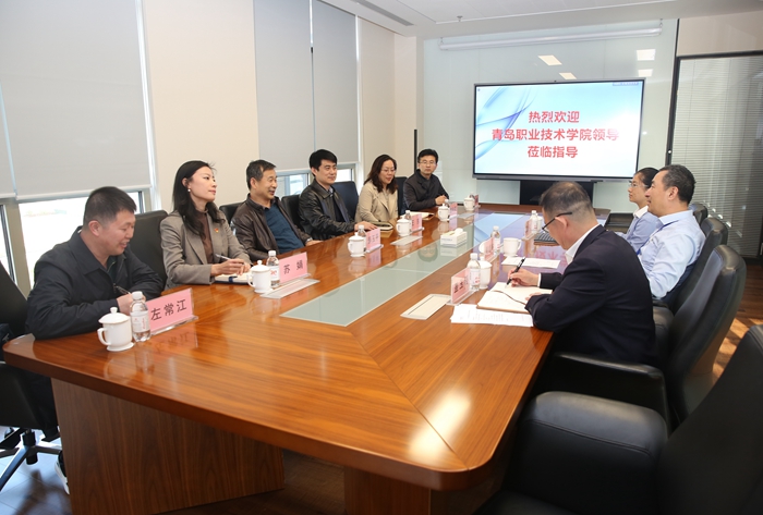 薛玉平、黄虎林共同回顾了青岛职院与海湾集团17年合作历程,特别是2018年双方共同设立海湾学院以来在实施省级现代学徒制试点、建立国开大学青岛学习中心、设立海湾集团奖学金等方面取得的一系列成绩,双方就进一步合作进行了磋商。海王星辰总经理曹成、人力资源部部长吴敏对双方在人才培养方案制定、实习就业等方面的合作给予高度评价,双方就建设健康管理专业方面达成了初步合作意向。李发田全面介绍了斯坦德集团发展情况,表示公司作为中国石化行业十佳创新中小企业和青岛市专精特新企业,期待与青岛职院在实习就业的基础上,进一步在项目研发、社会服务等方面进行深入合作。王东与三家企业领导进行了深入沟通,希望以项目为载体,进一步推进产教融合、校企合作,使合作更加具体深入。