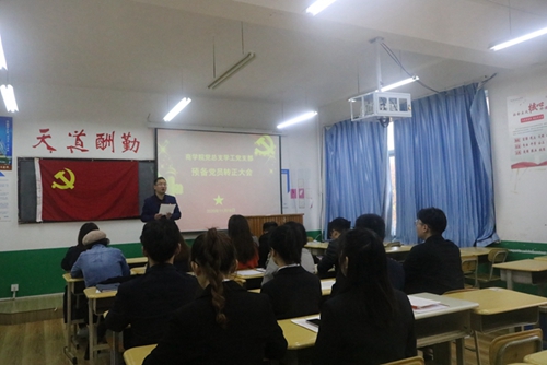 会上,贾印豪等7名同志依次向党组织宣读了转正申请,汇报了在预备期内工作、学习以及发挥党员先锋模范作用等方面情况;入党介绍人兼培养考察人分别介绍了预备党员一年的表现情况,并对其能否转正表明意见。支委会向大会报告了发展对象的审查情况;与会正式党员对发展对象能否入党进行了充分讨论,并采取无记名投票的方式进行表决。全体党员一致同意贾印豪等7名学生党员转为正式党员。