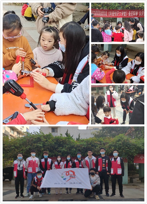 11月15日,海尔学院机电创新服务社、小强家电维修社、崧霖爱心社、微尘志愿者协会、创意手工社、青年志愿者大队、小雨点公益志愿者协会7家社团联合开展“双百融合进社区·志愿服务惠民生”职业教育活动周主题活动,用专业技能为社区群众送去了爱心和温暖。