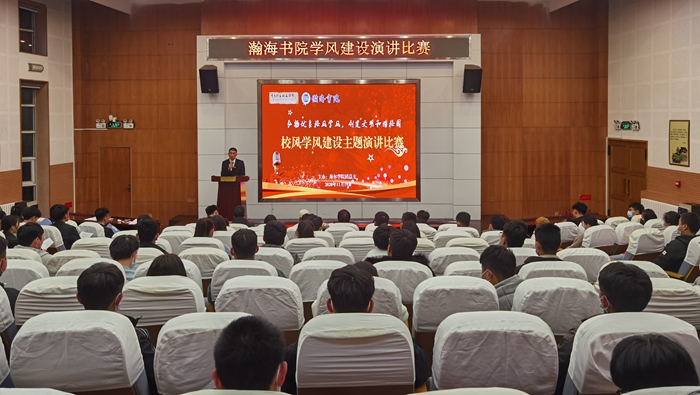 11月19日,瀚海书院以“弘扬优良校风学风,创建文明和谐校园”为主题,组织开展了校风学风建设主题演讲比赛,海尔学院党总支书记费晓玉、新生辅导员出席活动,海尔学院2020级各班学生代表150余人参加活动。