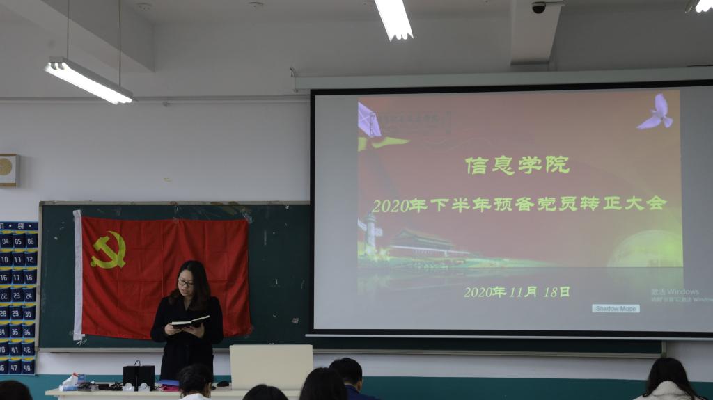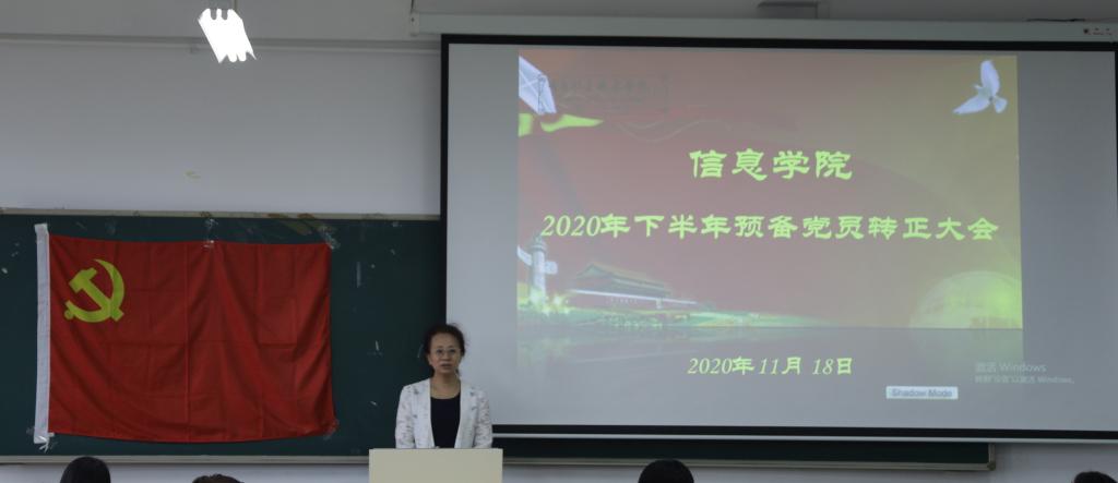 11月18日上午,信息学院2020年下半年预备党员转正大会在修能楼顺利召开。信息学院相关负责人、学生党支部教师党员、学生代表及2020年下半年转正预备党员参加了此次大会。