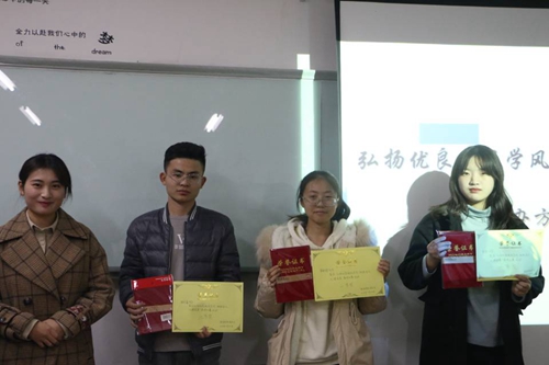 活动中,同学们围绕“弘扬校风学风”进行了分享,演说了我校校风、学风的内涵,生动诠释了学生是办学之本,校风、学风是求学之源的道理。活动现场气氛热烈。活动最后,评委宣布了比赛结果,并为获奖者颁发了荣誉证书,拍照留念。