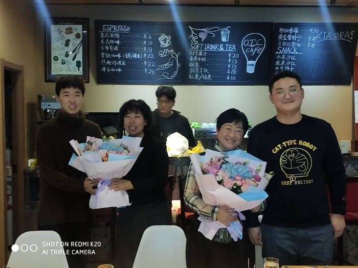 学生为两位教师献花、送祝福