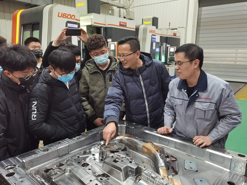 11月30日,海尔学院模具设计与制造专业2020级全体学生在专业教师赵水、金彩善、韩先征、李海英的带领下,前往校外实训基地青岛海泰科模具有限公司,进行《专业导论课》中生产认识环节的学习。