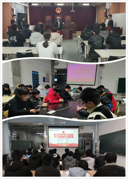 主题教育活动期间,海尔学院党总支、团总支还指导各班团支部围绕“深入学习宣传习近平法治思想,大力弘扬宪法精神”主题召开了团会,从国家宪法日的来历、设立国家宪法日的目的和意义、历届国家宪法日的主题,以及从11个坚持深刻领会习近平法治思想内涵等5个方面带领同学们学习宪法常识知识,凝聚法治共识和强化法治信仰。团会活动中,各团支部还通过微法庭、微竞赛、微座谈、微演讲的形式进一步增强了活动的趣味性、生动性和参与性,激励广大团员青年了解和学习宪法、培育和增强宪法法治观念。