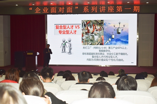 12月6日下午,教育学院在学校艺术厅举办“企业面对面”主题讲座第一期。讲座由学校优秀校企合作单位钟成国际人力资源服务公司创始人王国乾总经理主讲,教育学院人力资源管理专业师生共同聆听了讲座。