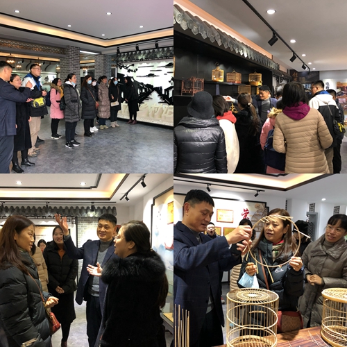 习近平总书记在十九大报告中首次提出实施乡村振兴战略,要把坚持和加强党的全面领导贯穿乡村振兴全过程。此次党性教育活动的第一站——即墨区移风店镇大欧村就是青岛积极打造乡村振兴齐鲁样板的排头兵,作为一个500多岁的“鸟笼村”正在续写小鸟笼的大传奇,被评为山东省第一批“乡村记忆”工程文化遗产和“中国淘宝村”。在大欧村村党支部书记王德祥的专程陪同与详细介绍下,党员教师们参观考察了大欧村乡村记忆馆、鸟笼传承人工作室、大欧村电商中心等,了解了省级非物质文化遗产“大欧鸟笼”发展历程、制作技艺、电商文化创意。
