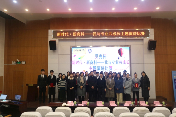 12月8日下午,儒商书院在学校报告厅举办了贝壳杯“新时代·新商科——我与专业共成长”主题演讲比赛。青岛贝壳房地产咨询服务有限公司校园招聘部经理刘广明、商学院党总支副书记薛峰、商学院各教研室负责人出席了此次活动。