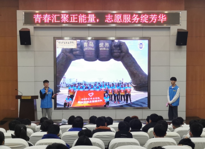我校2019届毕业生、青岛快乐沙爱心帮扶中心项目负责人、青岛市崂山区青联常委公茂军以《一名志愿者,一名专职公益慈善人》为主题,分享了生活片段中温暖人心的点点滴滴,向大家分享了自己做志愿服务的初心;通过分享自己在青职三年的成长关键词,讲述了自己跟崧霖爱心社一起成长的故事和在一次次志愿服务活动中收获的成长与感动;最后,结合自己入职青岛快乐沙爱心帮扶中心近两年来的社会工作经历,讲述了自己在志愿服务过程中所经历的坎坷、收获的温暖和看到的希望。
