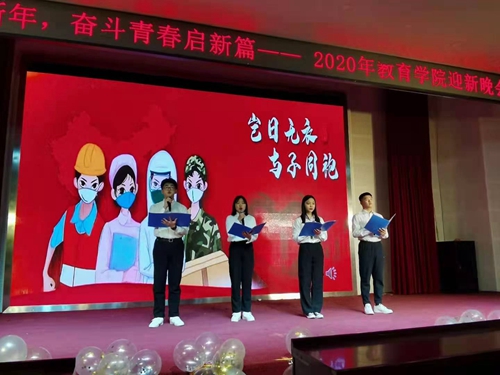 12月16日晚,教育学院在艺术厅举办了“众志成城迎新年·奋斗青春启新篇”2020级迎新晚会。教育学院相关负责人、教师代表以及2020级部分新生代表观看了晚会,其他学生通过抖音直播观看了此次晚会。