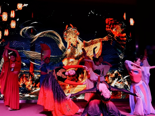 乐起舞动,激情四射的开场舞瞬间点燃了全场气氛,晚会正式拉开帷幕。歌曲串烧《遇见你才会有暖暖的感觉》及情景歌舞《无问》如同一阵温润的清风用歌声诉说校园故事;古风独舞《墨语》、古风弹唱《十年人间》,表演清丽曼妙,散发古朴唯美的韵味,国潮流行的碰撞曲风让观众一饱耳福;模特T台秀《艺·无界》,展现了来自2018级服装与服饰设计专业学生独立设计裁制的毕业设计作品,以缤纷的色块、驰骋的想象、匠心独运的设计,带领观众走入时尚创意与设计灵感的完美融合之境;钢琴独奏《雪千寻》,以轻柔跳跃的音符,婉转的旋律在观众心中泛起涟漪,心旷神怡中感悟曲韵悠扬;原创朗诵《艺见倾心,逐梦韶华》,带领艺术学子将校园生活感悟融入诗歌、将生活美好想往融入情感,用饱含青春朝气的朗诵诠释追梦赤子之心。