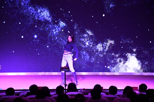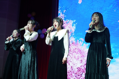 此外,晚会还得到了兄弟院系的联袂支持,教育学院同学带来的民族群舞《舞姿艺》荟萃少数民族舞蹈,舞姿翩然、技艺精湛,充满异域风情的精妙演绎博得阵阵掌声;海尔学院与艺术学院同学合作的弹唱《十年人间》、rap说唱《救赎》以及海信学院空集乐队带来的摇滚歌曲《山海间撒野》,通过活力四射的音符向观众传递了欢乐和能量,将全场气氛推向高潮。晚会最后在洋溢着温情的歌曲串烧《风雨相伴用爱追光》中圆满结束,同学们自发用手机点亮荧光,随旋律舞动,不舍落幕。