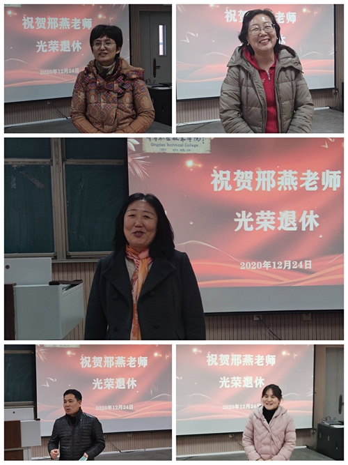 12月24日下午,海尔学院举办老教师光荣退休欢送会,全体教师祝贺制冷与空调技术专业教师邢燕光荣退休。欢送会由海尔学院党总支书记、工会主席费晓玉主持。