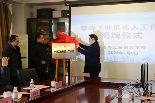 1月8日下午,“李峰工业机器人工作室”揭牌仪式在我校中高职五年贯通合作学校——青岛工贸职业学校举行,青岛工贸职业学校校长徐积林,我校海尔学院副院长张云龙、工业机器人教研室主任李峰教授共同为工作室揭牌。来自诸城市经信委、山东辰榜数控装备有限公司等政府、企业的代表参加了此次揭牌仪式。