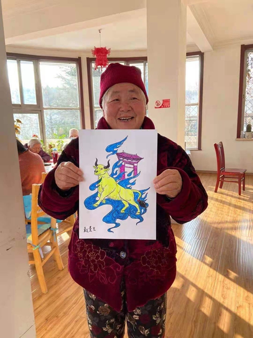 团队成员为老人们上公益美术课