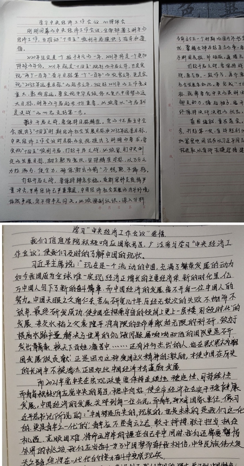 中央经济工作会议总结了2020年的经济工作,分析了当前经济形势,对未来进行了前瞻性思考、全局性谋划和战略性部署。青岛市委经济工作会议勾勒了青岛“十四五”时期的发展蓝图,令人鼓舞,催人奋进。广大团员同学通过手机、电脑等网络载体认真观看学习,边看边做笔记,认真撰写学习心得。大家一致认为在了解宏观政策后,加深了对“十四五”开局之年发展方向的理解,强化了机遇意识和风险意识,通过“2021年八项重点工作任务”的重点学习,了解了“接下来一年重点做什么”。团员同学们表示,身处大有可为的新时代,将深入学习贯彻中央经济工作会议精神,在奋斗中释放青春激情、追逐青春理想,以青春之我、奋斗之我,为民族复兴铺路架桥,为祖国建设添砖加瓦,交出更令人满意的“青春答卷”。