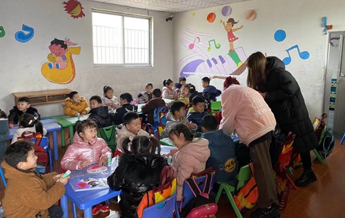 1月15日,艺术学院“智联队”前往枣庄市陶庄金宝贝幼儿园开展了公益支教社会实践活动,为孩子们上了一堂趣味盎然的新年贺卡手工课。