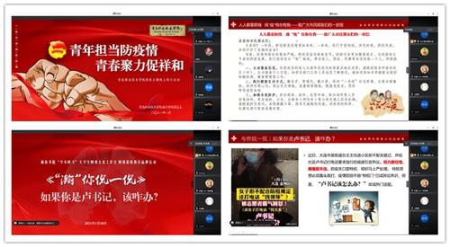 在此次主题团日活动筹备阶段,海尔学院团总支着眼于我国当前疫情多点散发的现实情况,结合学校新冠肺炎疫情防控工作领导小组办公室相关防疫要求部署、校团委发布的《关于在全校开展“青年担当防疫情、青春聚力促祥和”线上主题团日活动的通知》相关要求,同时聚焦网络上有关疫情防控的舆论热点,采取集体备课的形式精心谋划部署,确定了此次线上团课的主要内容。