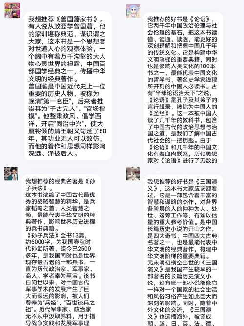 同学们在线上群聊分享读书感受