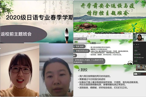 活动中,旅游学院全体辅导员教师秉承以人为本、以生为本的使命精神,按照《学校2021年春季学期学生安全返校工作方案》的相关要求,制作了精美的幻灯片,为学生们悉心讲解了返校流程和注意事项,特别提醒学生们重视返校途中的人身安全、财产安全及疫情防护,并对入校前体温检测、严格出入管理、外出请假流程、开学后补考等相关事宜作了详细说明。