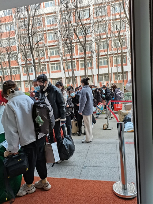 学生有序排队进入宿舍