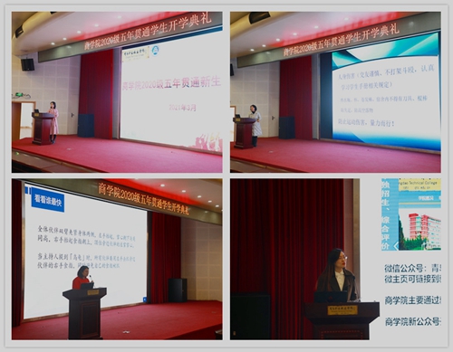 3月6日下午,商学院在学校艺术厅举行了2020级五年制贯通学生开学典礼暨入职教育启动仪式。商学院领导班子、各教研室主任、部分辅导员代表、各中职学校跟班辅导员、全体2020级五年制贯通学生参加了活动,商学院党总支副书记薛峰主持活动。