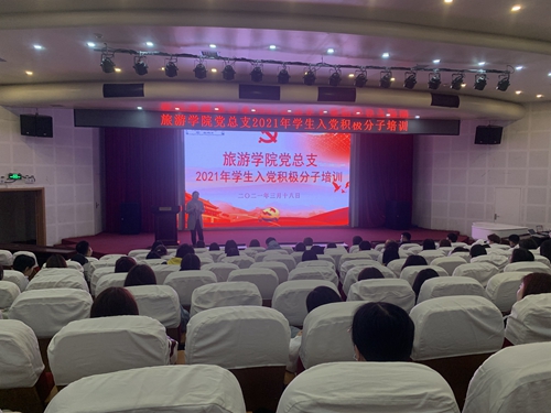 3月18日晚,旅游学院党总支在艺术厅召开2021年学生入党积极分子专题培训活动。