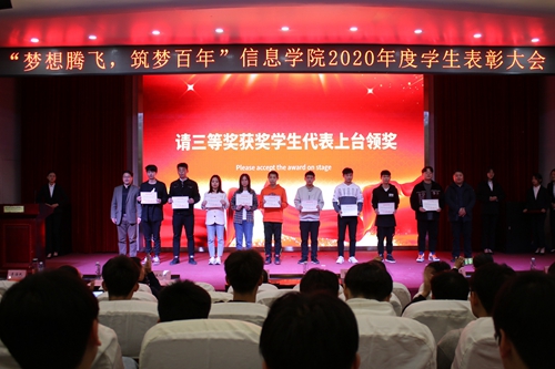 4月8日晚,信息学院在艺术厅举办了“梦想腾飞,筑梦百年”2020年度学生表彰大会。信息学院领导班子成员、院务会全体成员,信息学院合作企业千锋集团教学总监王向军、山东校区校长及院校合作部大区经理等参加了大会。