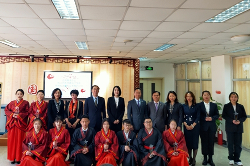 4月9日下午,应用韩语专业校企合作共育现代学徒拜师仪式暨专业发展研讨会在学校图书馆二楼尼山书院举行。来自3家合作企业的14位导师代表、旅游学院相关负责人、应用韩语专业全体教师和2019级1班全体学生参加了此次活动。