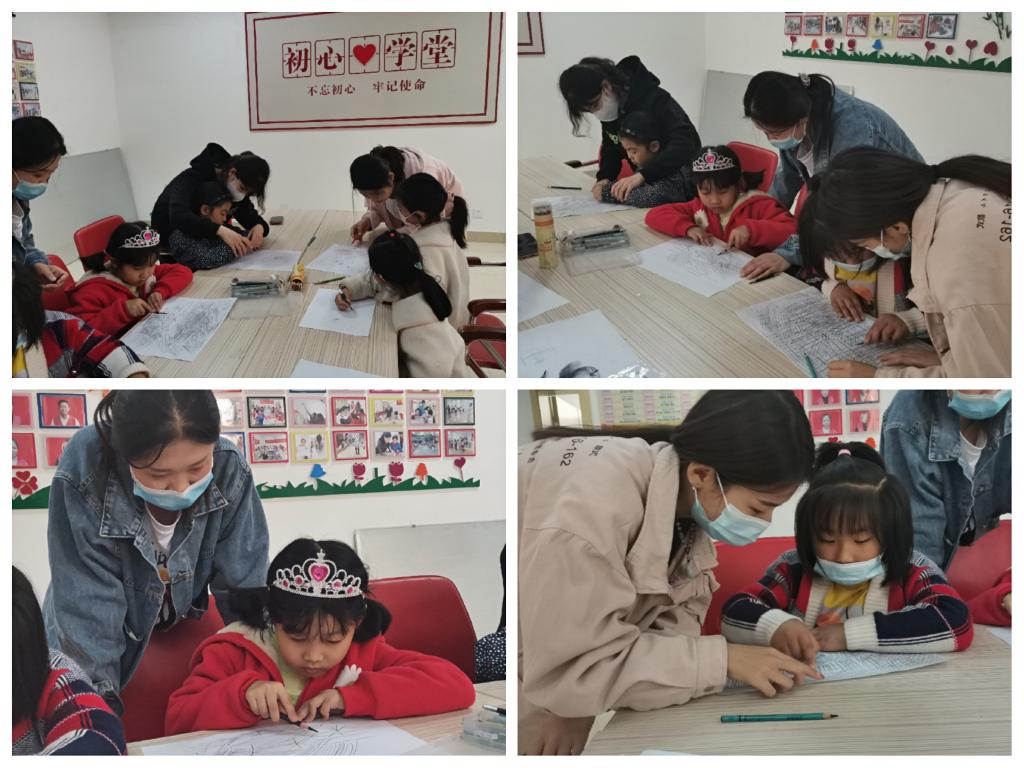 4月11日下午,艺馨书院“艺智助梦,微爱课堂”志愿服务队前往刘公岛路社区服务中心开展了“七彩四点半”素描兴趣启蒙课堂。