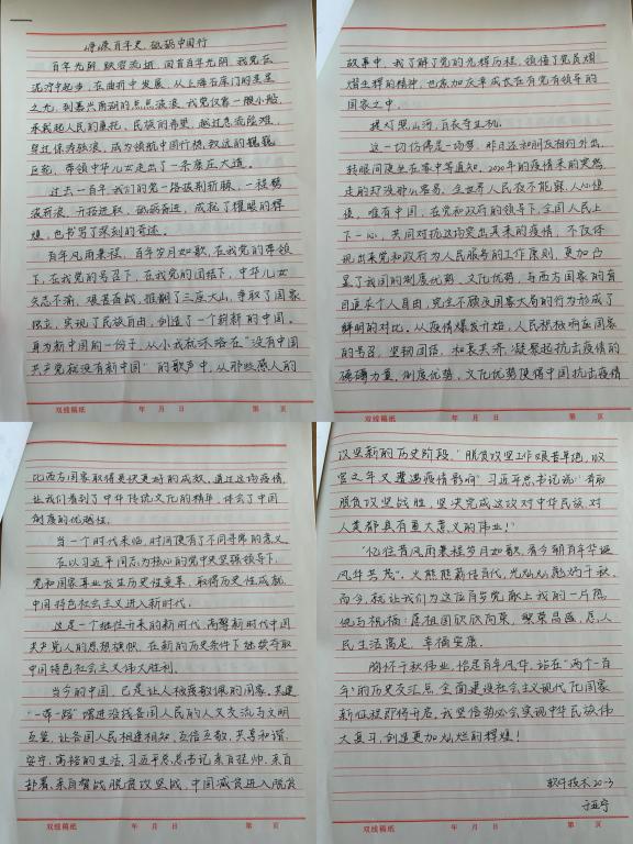 此次比赛以“喜迎建党100周年”为背景,收到来稿40余件,共评选出一等奖1名,二等奖2名,三等奖5名。在文章中,同学们用手中的笔回顾了中国共产党建党百年来的革命历程,表达了对中国共产党百年华诞的真挚祝福。同时呼吁当代青年大学生,要加强对党、对祖国、对中国特色社会主义事业的忠诚热爱,提升自身政治文化素养,让青春之花在实现中华民族伟大复兴中国梦的进程中绽放。