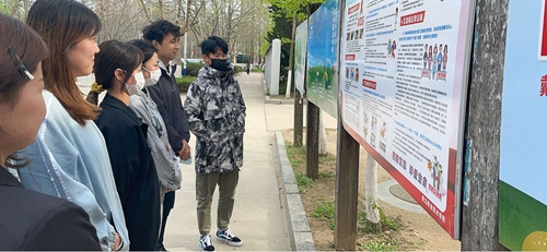 学生们学习宣传栏专题材料