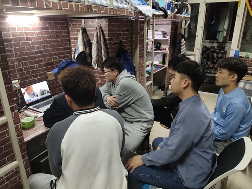 学生们在宿舍内观看央视节目
