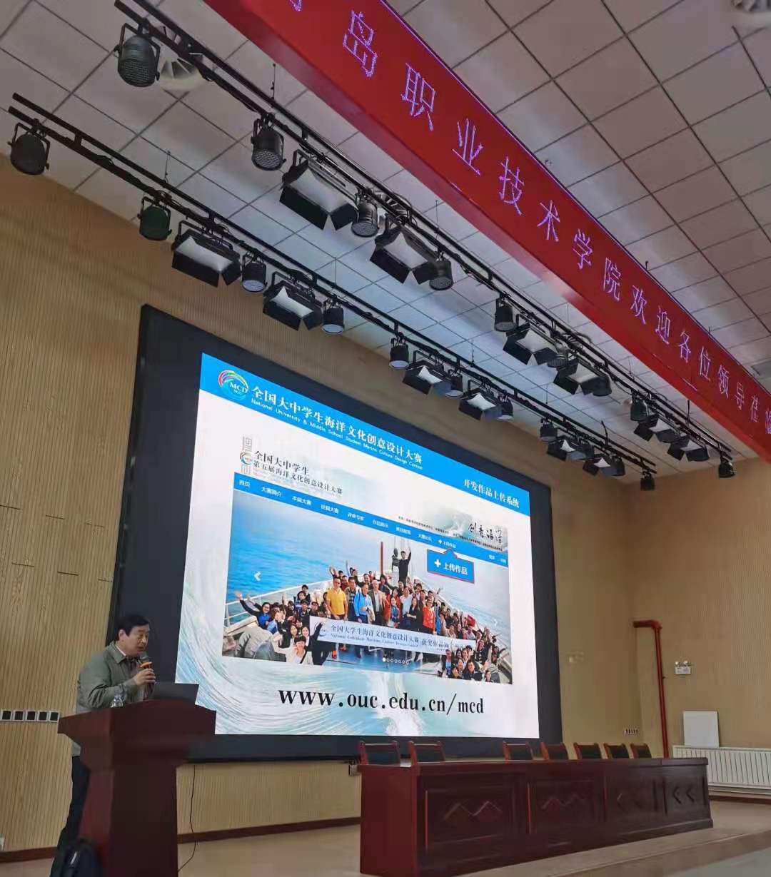4月15日下午,艺术学院邀请中国海洋大学海洋文化创意设计发展中心主任吴春晖教授,在创意大楼B座401举办“创意蓝色梦想”&“设计=价值”专题报告会。副院长邢广陆到现场聆听了报告,艺术设计专业的同学以及青岛滨海学院和黄海学院的部分教师参加了此次报告会,艺术学院副院长刘卫国主持报告会。