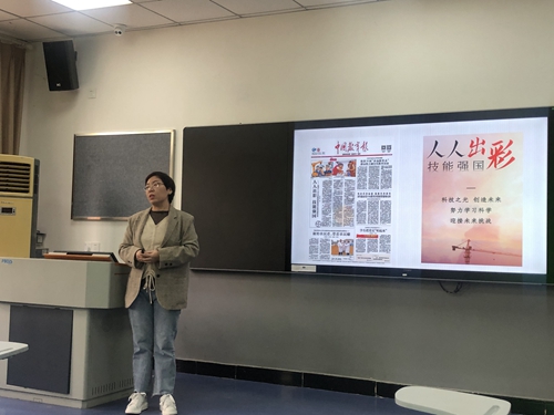 活动中,高莉以“人人出彩,技能强国”为题,通过生动的案例和视频为党员教师们重点讲解了党的十八大以来我国职教改革发展成就,从职业教育是“类型”教育、人才培养迈向高质量、产教融合全面推进、服务国计民生等方面,带领党员教师们进一步感受到了职业教育面貌的格局性变化、办学活力的增强与为中国经济发展、脱贫攻坚胜利所起到的有力支撑。