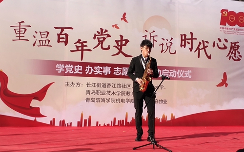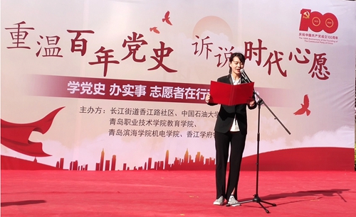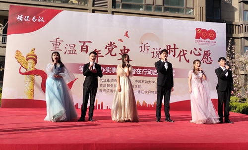4月17日,教育学院20名文艺志愿者赴香江路社区开展“重温百年党史,诉说时代心愿”主题活动,送文艺进社区,为社区居民送去欢乐。此次文艺演出由长江街道香江路社区、教育学院、中国石油大学、青岛滨海学院机电学院共同举办。