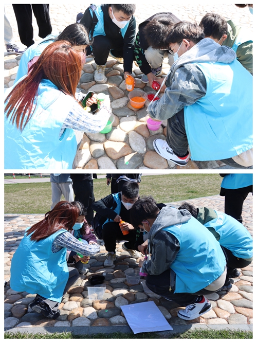 志愿者们在景区内与正在春游的小朋友们一起进行了“最美地球”涂鸦绘画活动,小朋友们以志愿者事先清洁好的废弃饮料瓶和快餐盒为绘画工具,进行涂鸦创作,在画纸上描绘出自己对地球的美好向往。志愿者们用自己手绘的宣传海报、精心制作的环保倡议书向广大市民宣传讲解低碳环保知识,过往的路人纷纷驻足并积极参与到活动中。