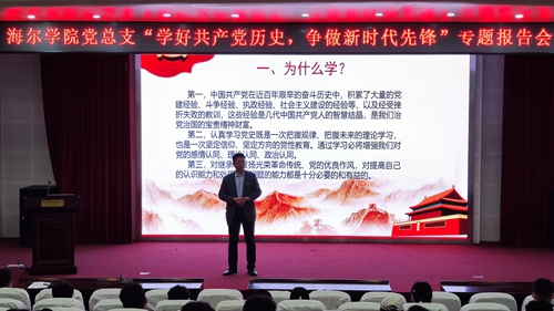 活动伊始,海尔学院党总支副书记杨春旺以“为什么学、学什么和怎么学中国共产党党史”为主线,分别从理论发展角度和时间发展角度两方面与同学们一同分享了中国共产党百年的党建经验、斗争经验、执政经验、社会主义建设经验,以及建设过程中所经受挫折失败的经验教训,为同学们提供了学习党史的学习思路,勉励大家继承和发扬中国共产党的光荣革命传统、优良作风,提升自身的认知能力和处理实际问题的能力,学史明理、学史增信、学史崇德、学史力行,将党史学习教育的落脚点放在工作学习实践当中。