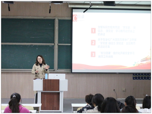 4月22日下午,信息学院在修能楼301组织开展“传承党史精神,凝聚青春力量”学生团干部培训暨“学党史、强信念、跟党走”学习教育推进会。信息学院党总支书记李明杰、团总支书记孙玉宁作培训讲座。